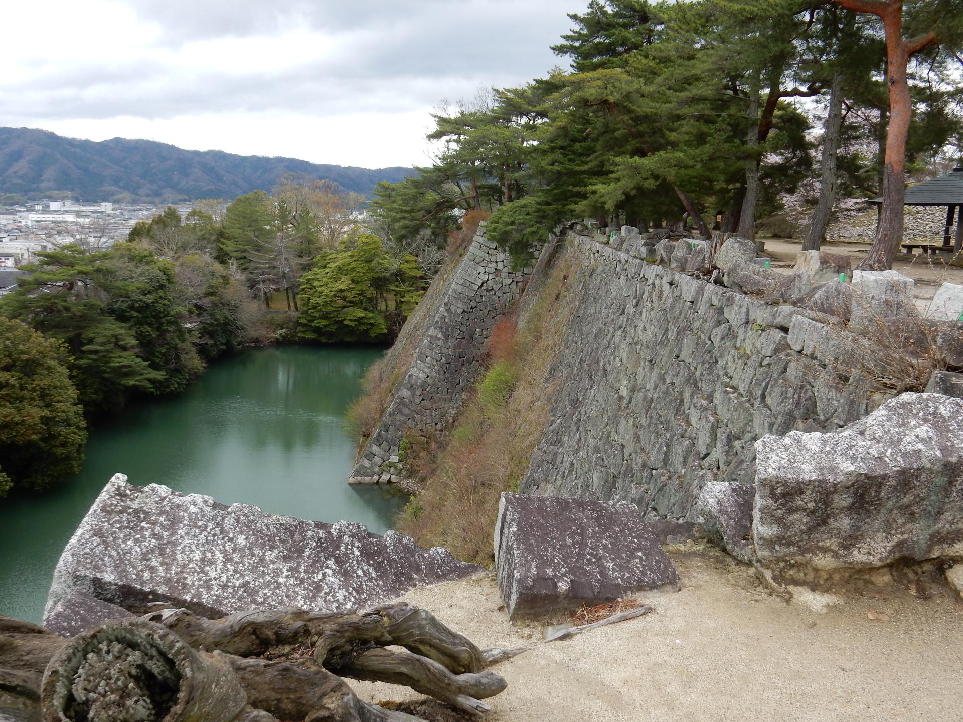 In 1608, during Japan's Sengoku period, Todo Takatora, a celebrated master of castle construction, expanded and renovated this castle. Iga ninja are said to have guarded the castle town. Today, the inner moat and stone walls, among the tallest in Japan, remain. The three-story wooden castle tower was reconstructed in 1935. Inside there are exhibits of armor, weapons, and historical documents, with calligraphic works by famous people embedded in the third-floor ceiling.