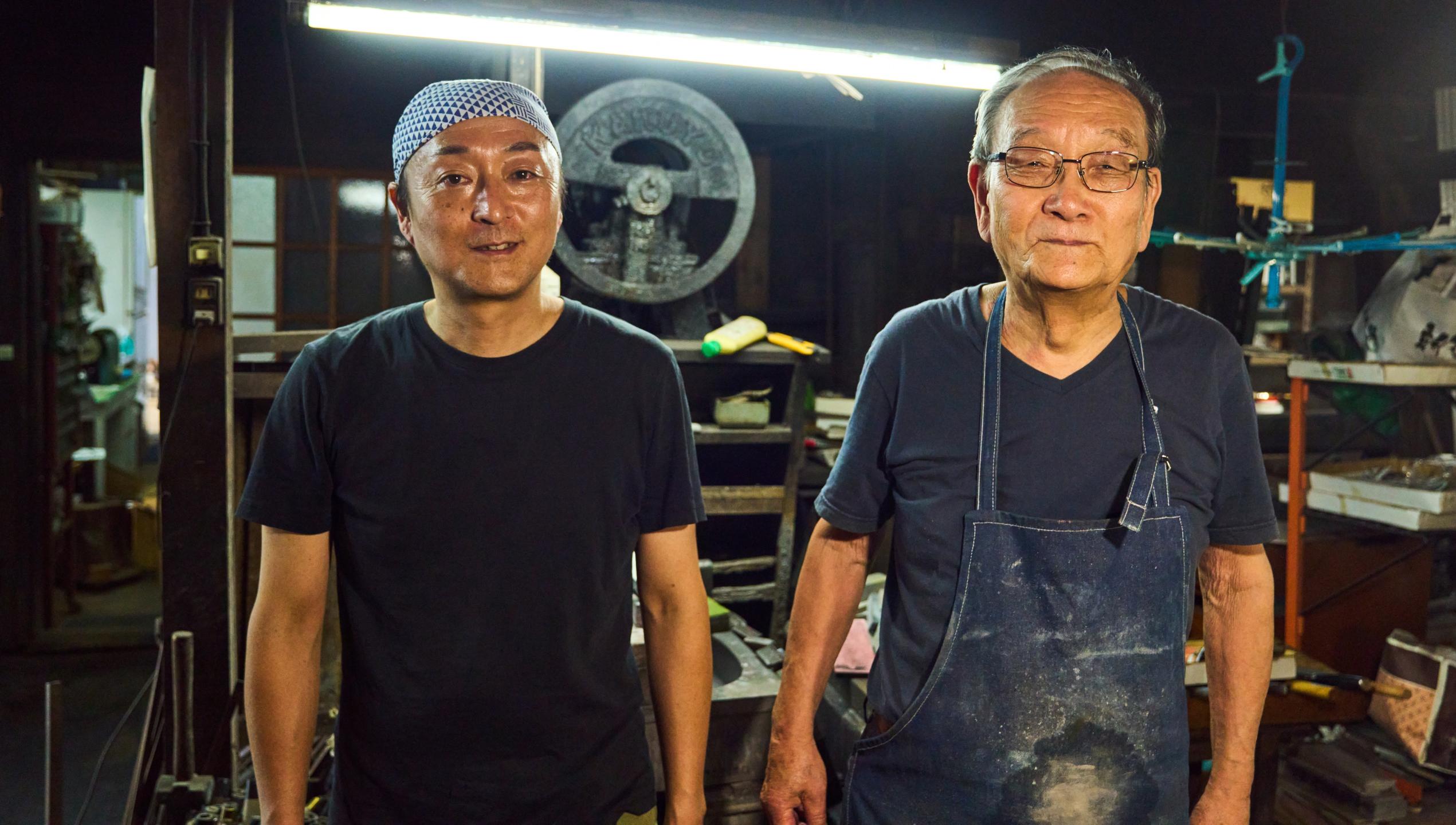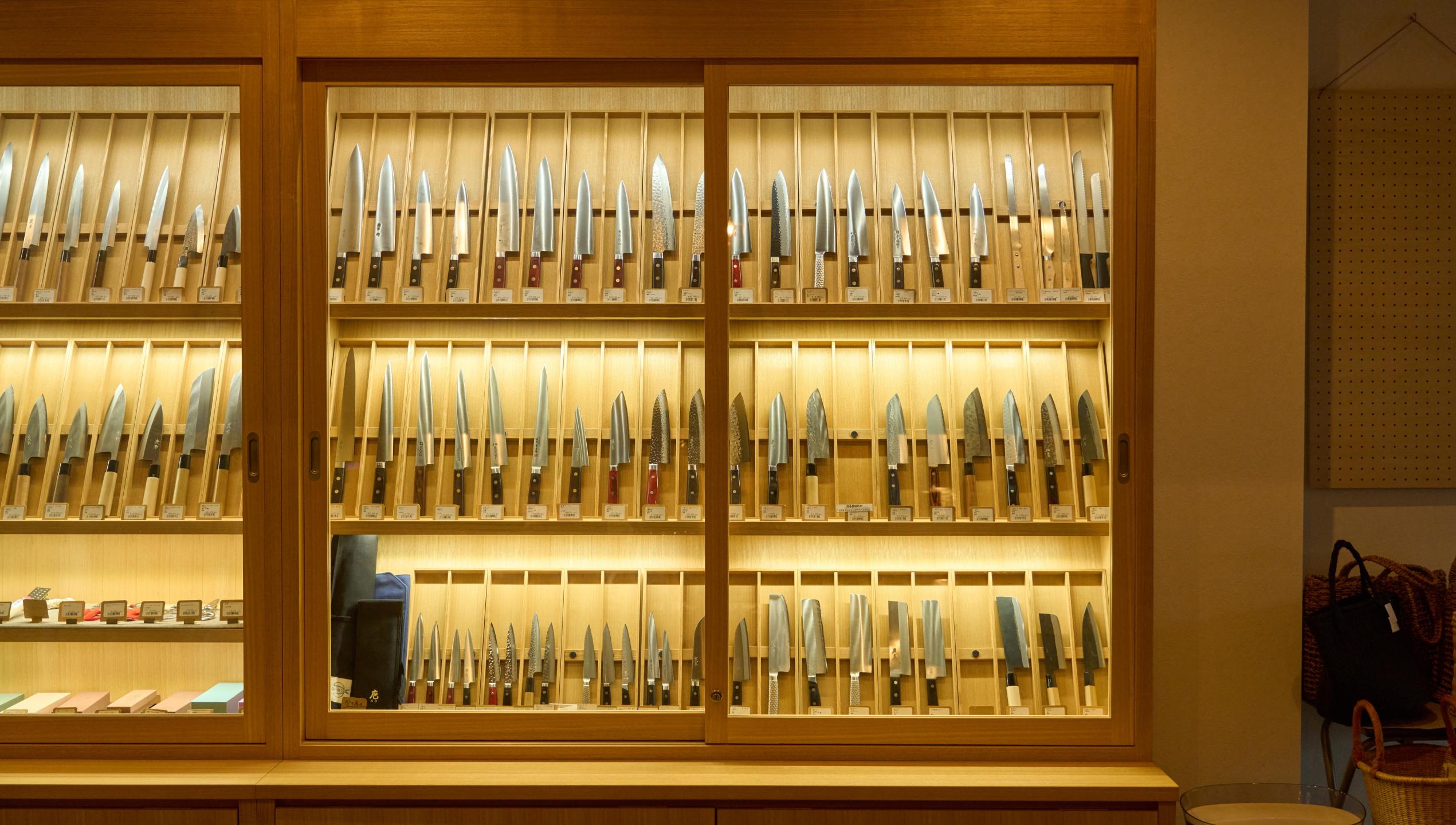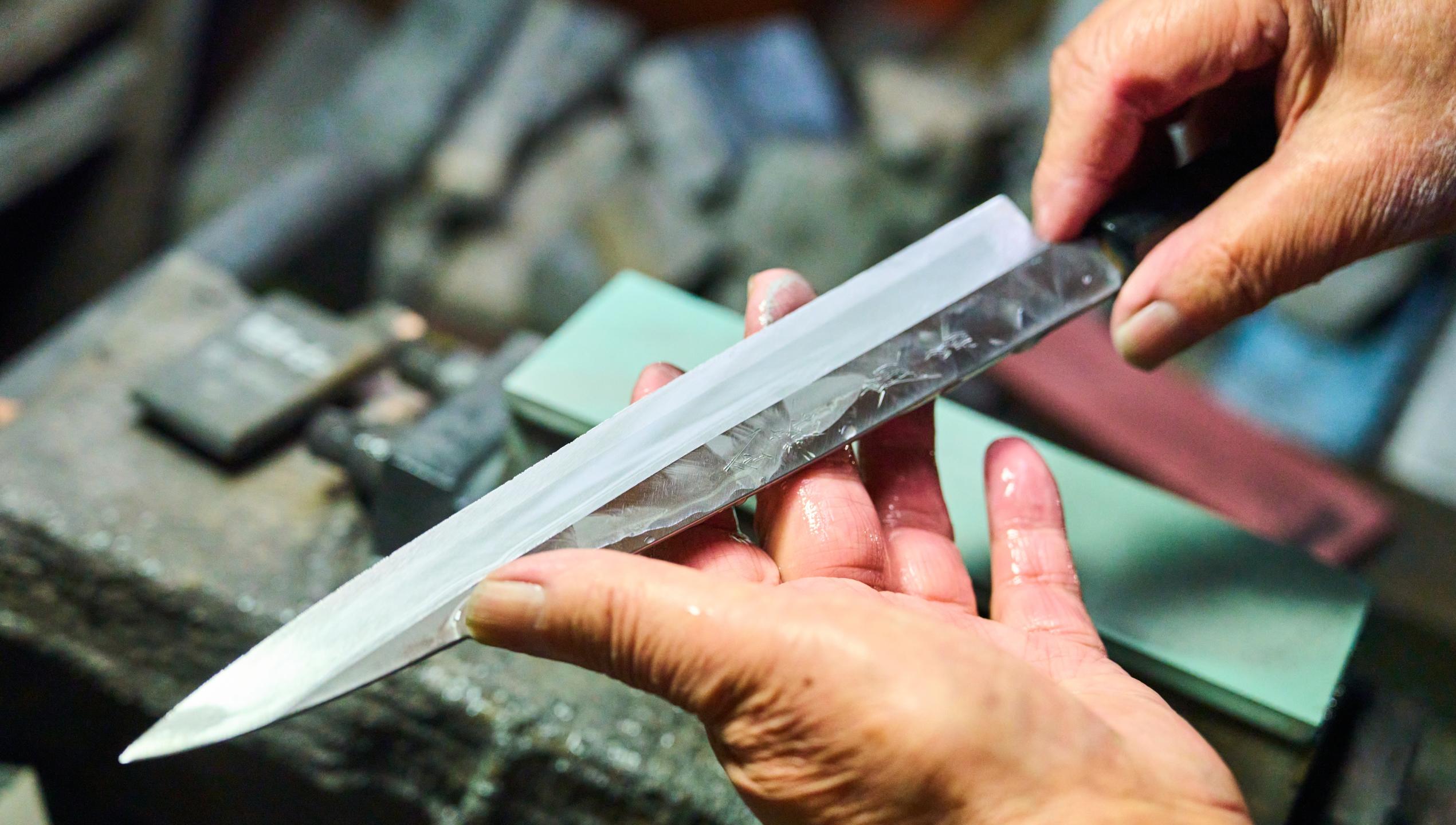 The studio behind the shop is a hub of activity, with blades being sharpened and steel being forged. Craftsman Takashi Mishina, the sixth-generation owner, grew up while watching his father, Noritaka, work diligently in the studio.