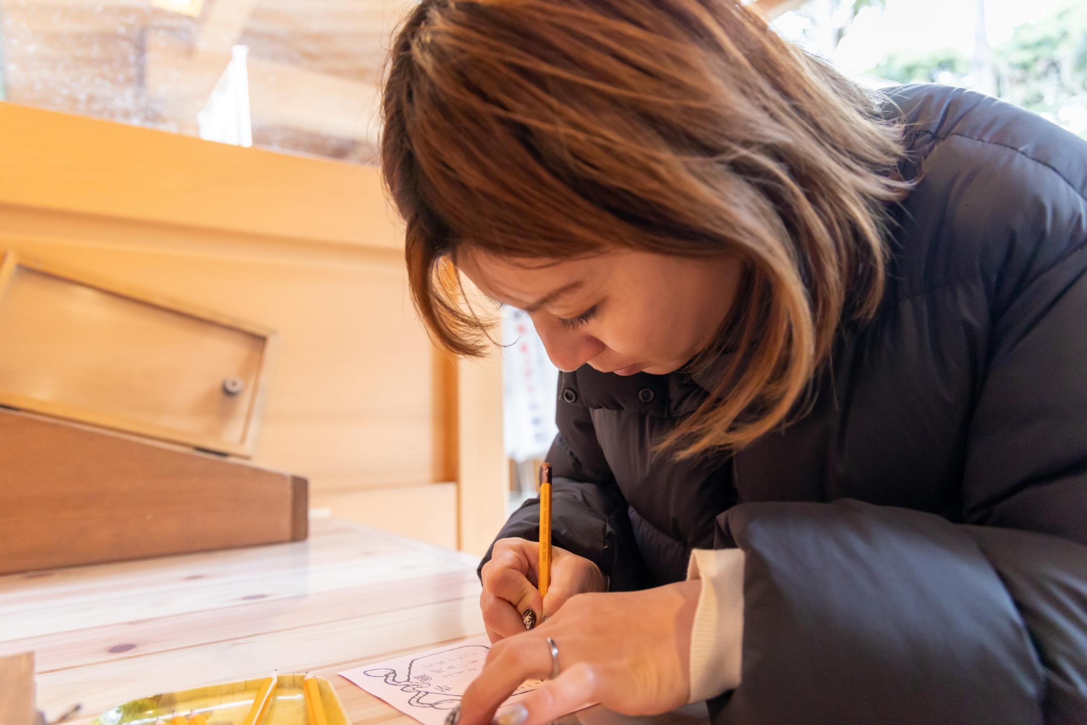 The deity commonly known as “Ishigami-san,” enshrined within the precincts of Shinmei Shrine, is the daughter of the Watatsumi sea god, which is said to grant a woman's wish, so many female visitors come here to make their wishes and say their prayers.