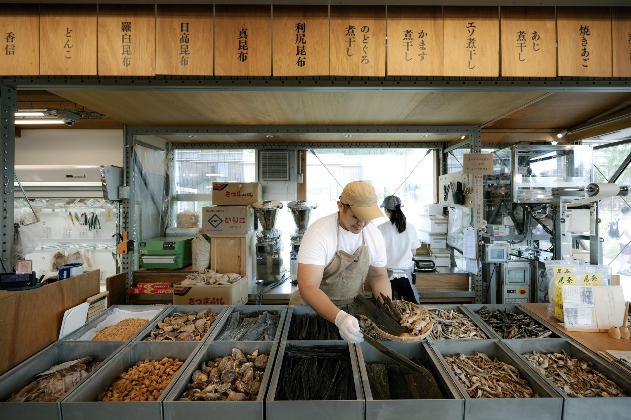 Okume Mie VISON Store is a fine food boutique selling the world's first DIY dashi pack. With this patented set, you can create your own dashi from a selection of 24 additive-free Japanese ingredients including katsuobushi, roasted flying fish, Rishiri kelp, and dried shiitake mushrooms.