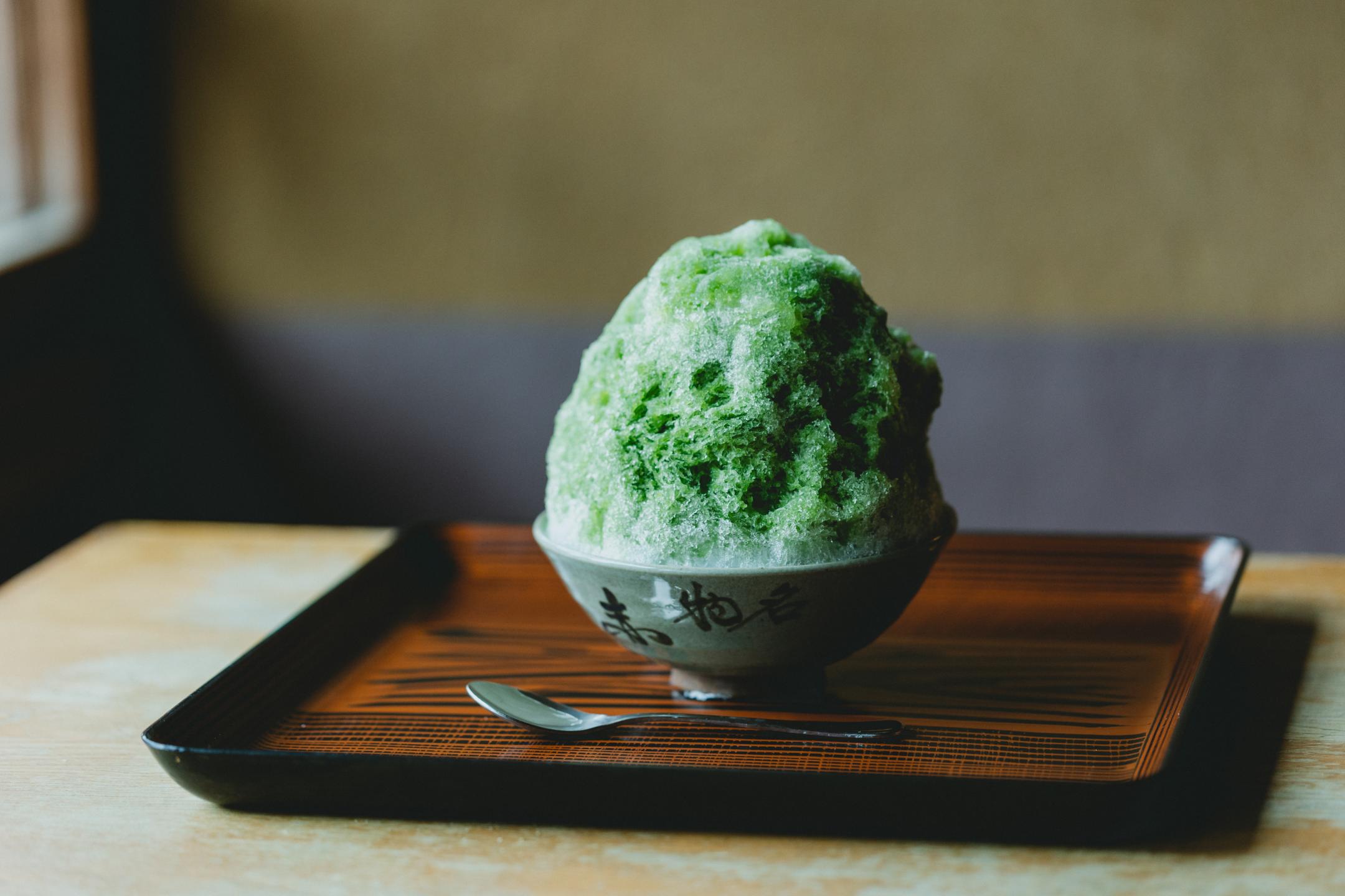 In summertime, “Akafuku Shaved Ice” (800 yen) is something of a local tradition. The topping is a matcha honey, and inside is a special bean paste filling with mochi rice. You can also find this treat at places like Dango-ro Chaya in Okage Yokocho.
