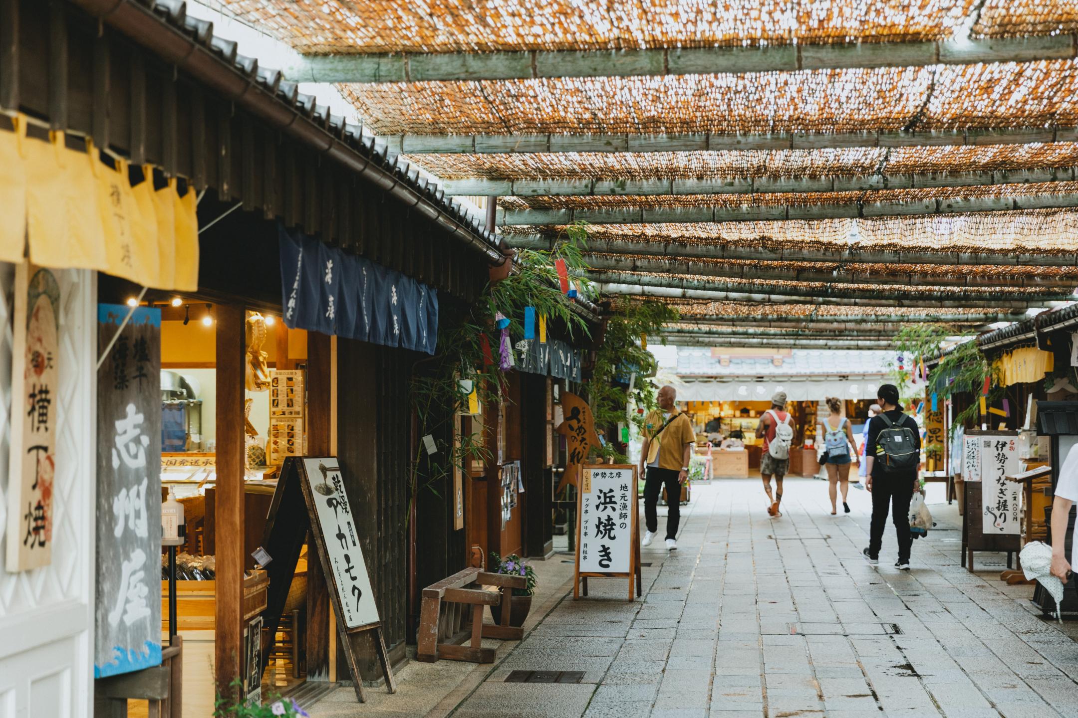Okage Yokocho is an area about halfway along Oharaimachi Street where you will find around 50 shops selling local delicacies.
