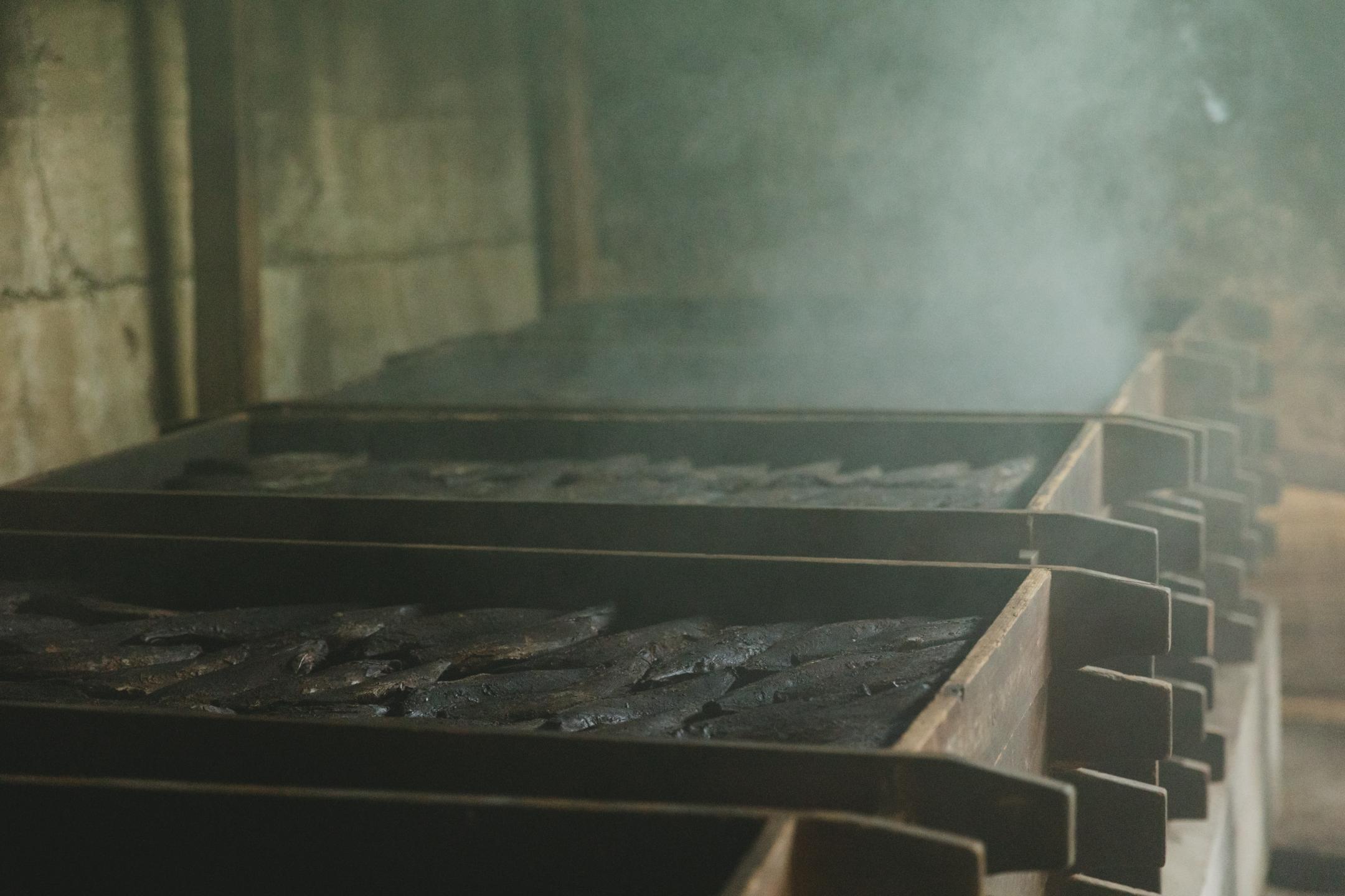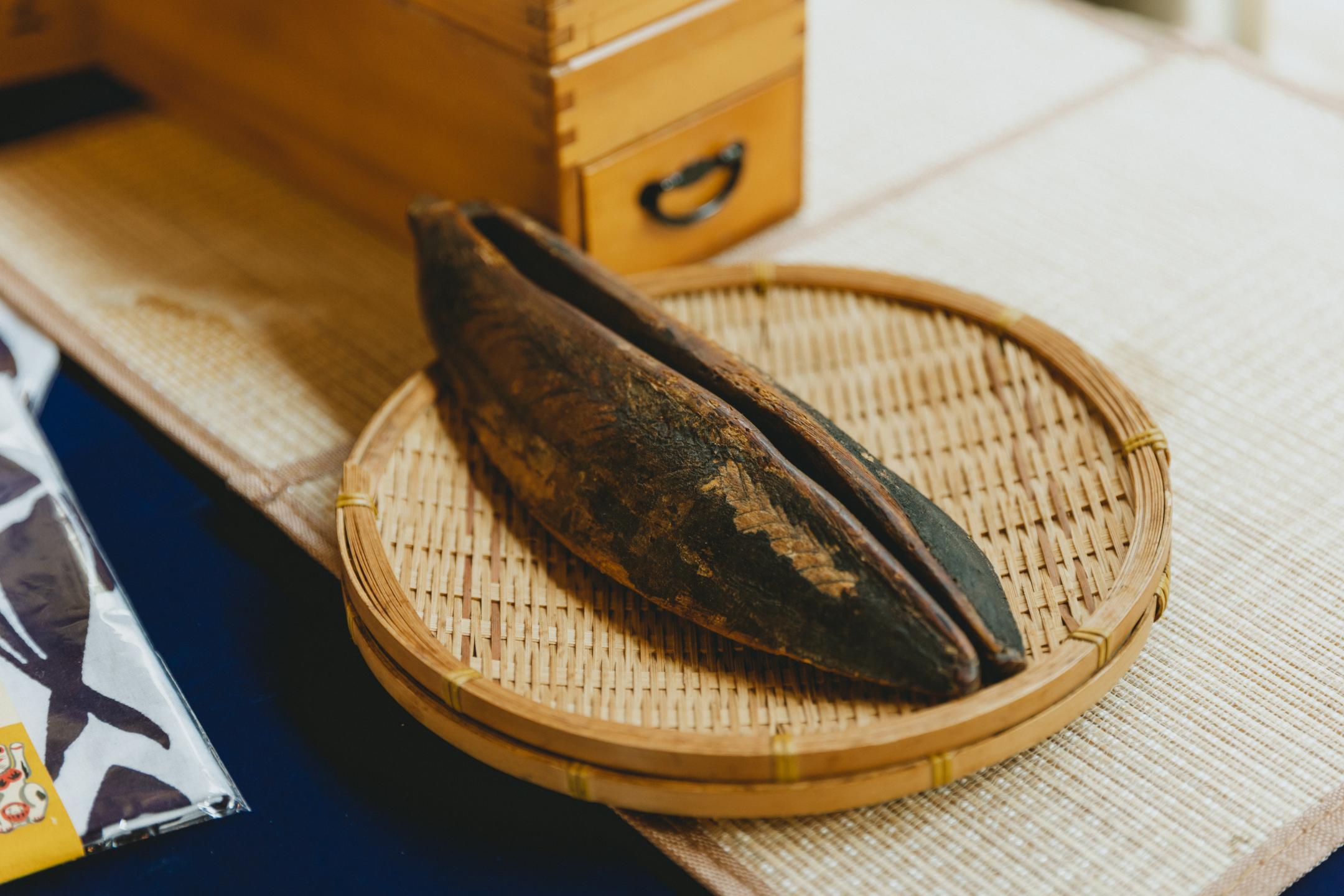 Bonito Flake Shop Tenpaku is a nationally registered tangible cultural property and continues to produce katsuobushi using the “Tebiyama method,” which was perfected around the 18th century. The wood they use for smoking is ubame oak, the raw timber that is used to produce high-grade bincho charcoal.