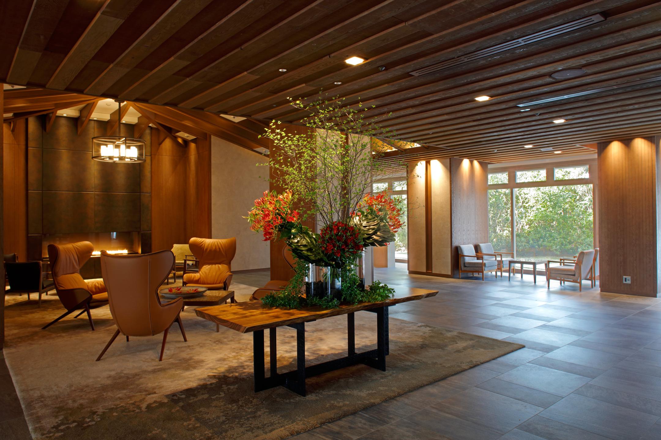 The main lodging option is HOTEL VISON (from ¥43,000 per night for 2 people, including 2 meals), which boasts 6 detached villas and a 155-room main building. Choose from HATAGO VISON, with uniquely designed buildings, and HACIENDA VISON, overseen by The Conran Shop Japan. Families can opt for family suite rooms featuring loft-style beds, raised tatami areas and open-air baths, which include unlimited access to the Honzo-yu bathhouse and sauna.