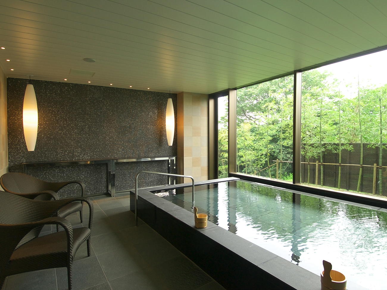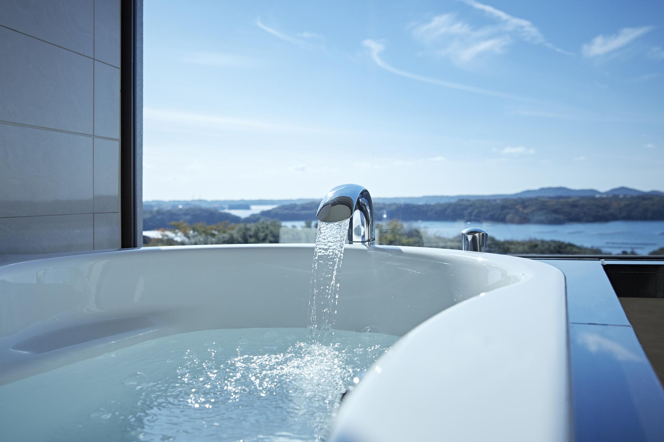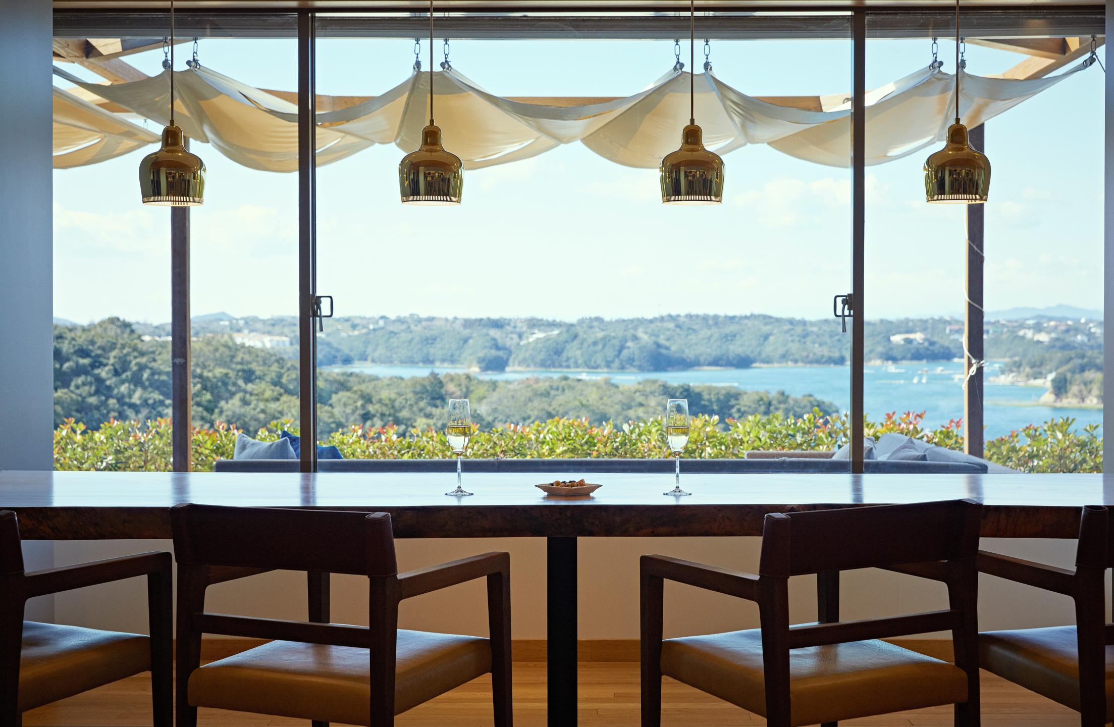 Stay in one of these rooms and you can live the mansion life, taking time out for reading, tea, bathing, or any other leisure pursuit. There's also a top-floor guest lounge overlooking Ago Bay where you can enjoy blissful moments savoring drinks and sweets. A large bathhouse for the exclusive use of guests at The Bay Suites includes a dry sauna, private shower rooms, and the tepidarium, a warm-air bath exclusively for women, to gently soothe your body and mind. Rates start at ¥126,000 per night for 2 people sharing a room, including 2 meals.