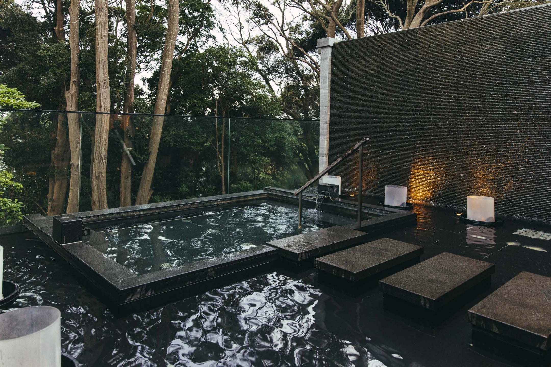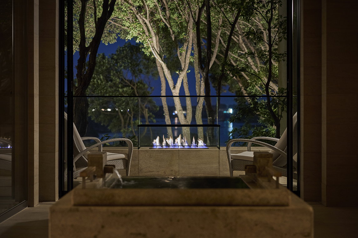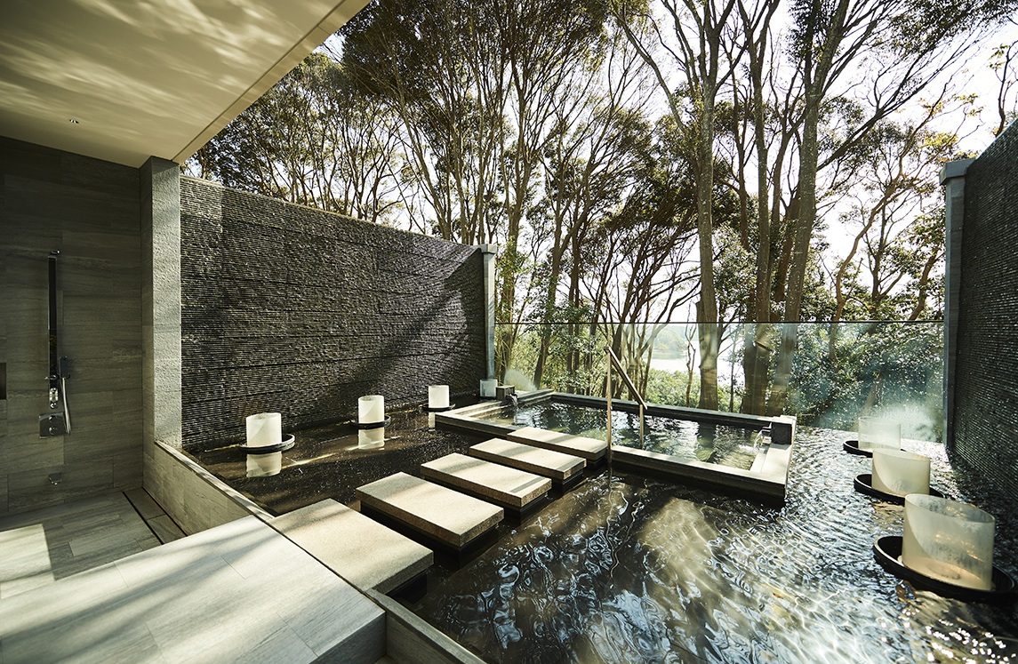 After dinner, you can sink into the night with the warm terrace fireplace aglow. All rooms include Mikimoto bath amenities, and rooms in the main building also feature CLAYD SPA salts. Rates start at ¥154,000 for 2 persons (meals included).