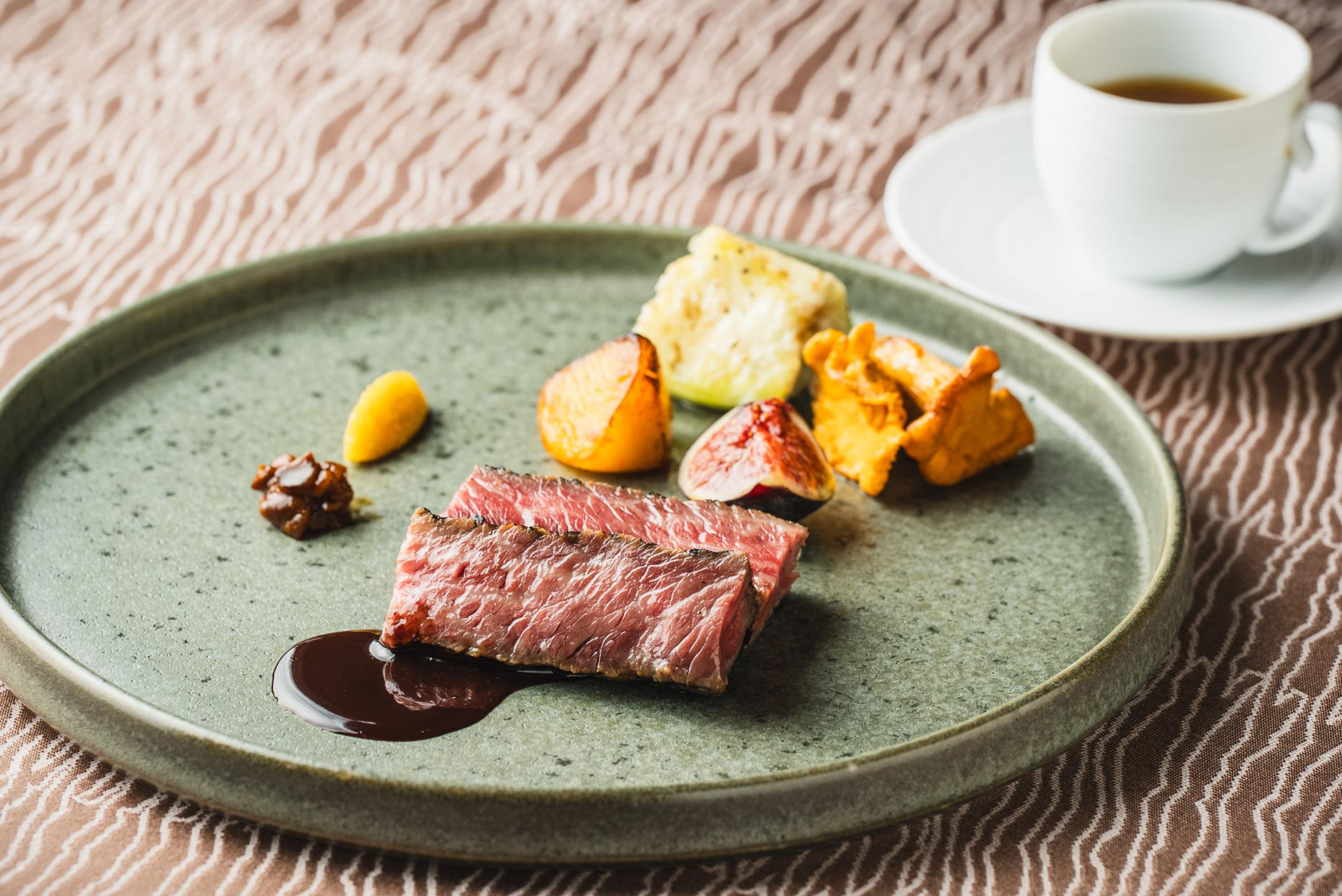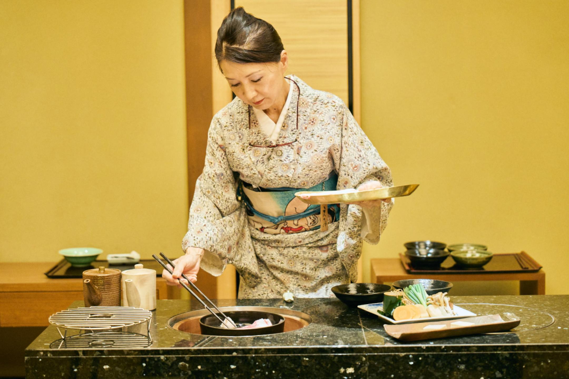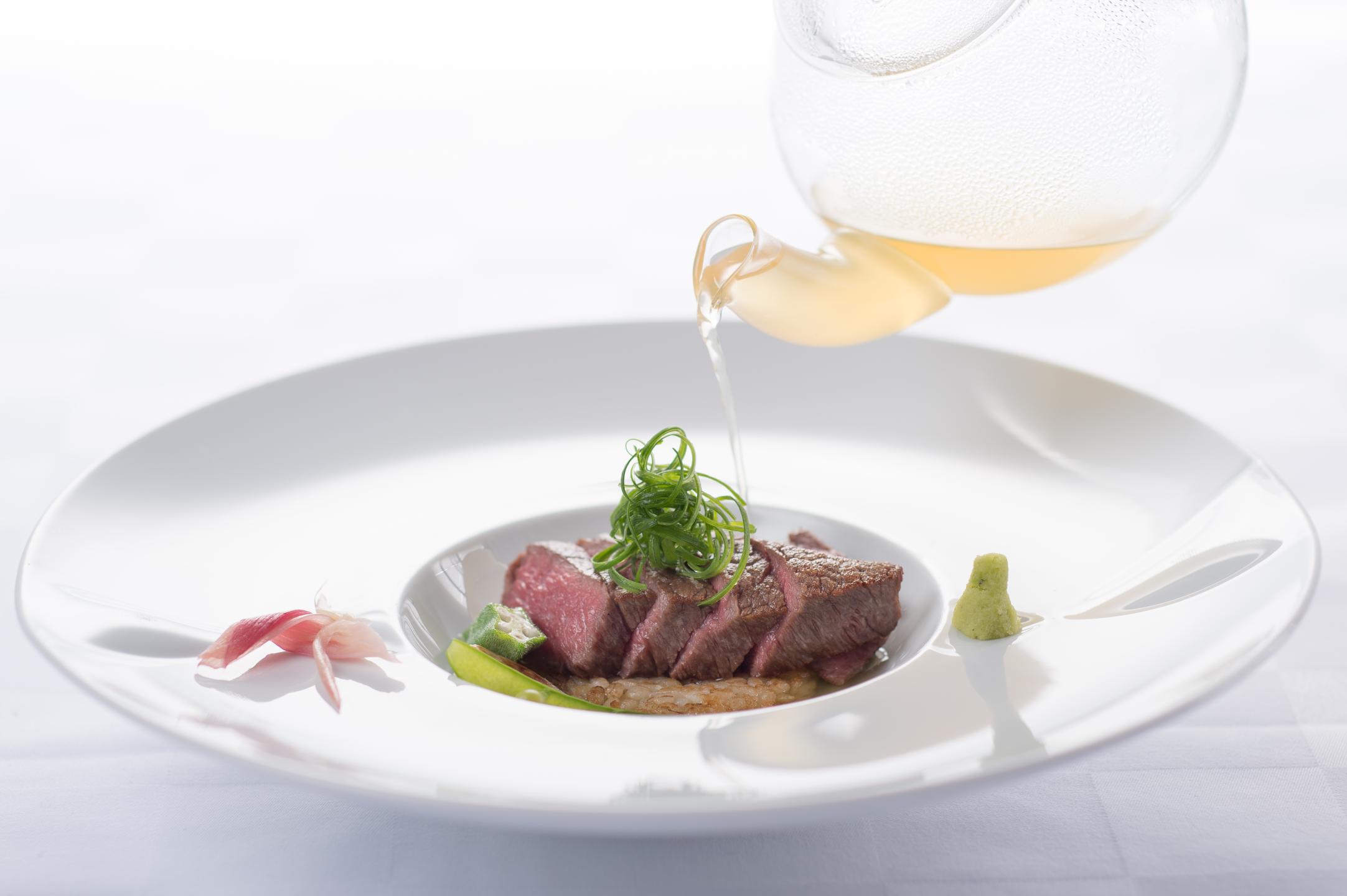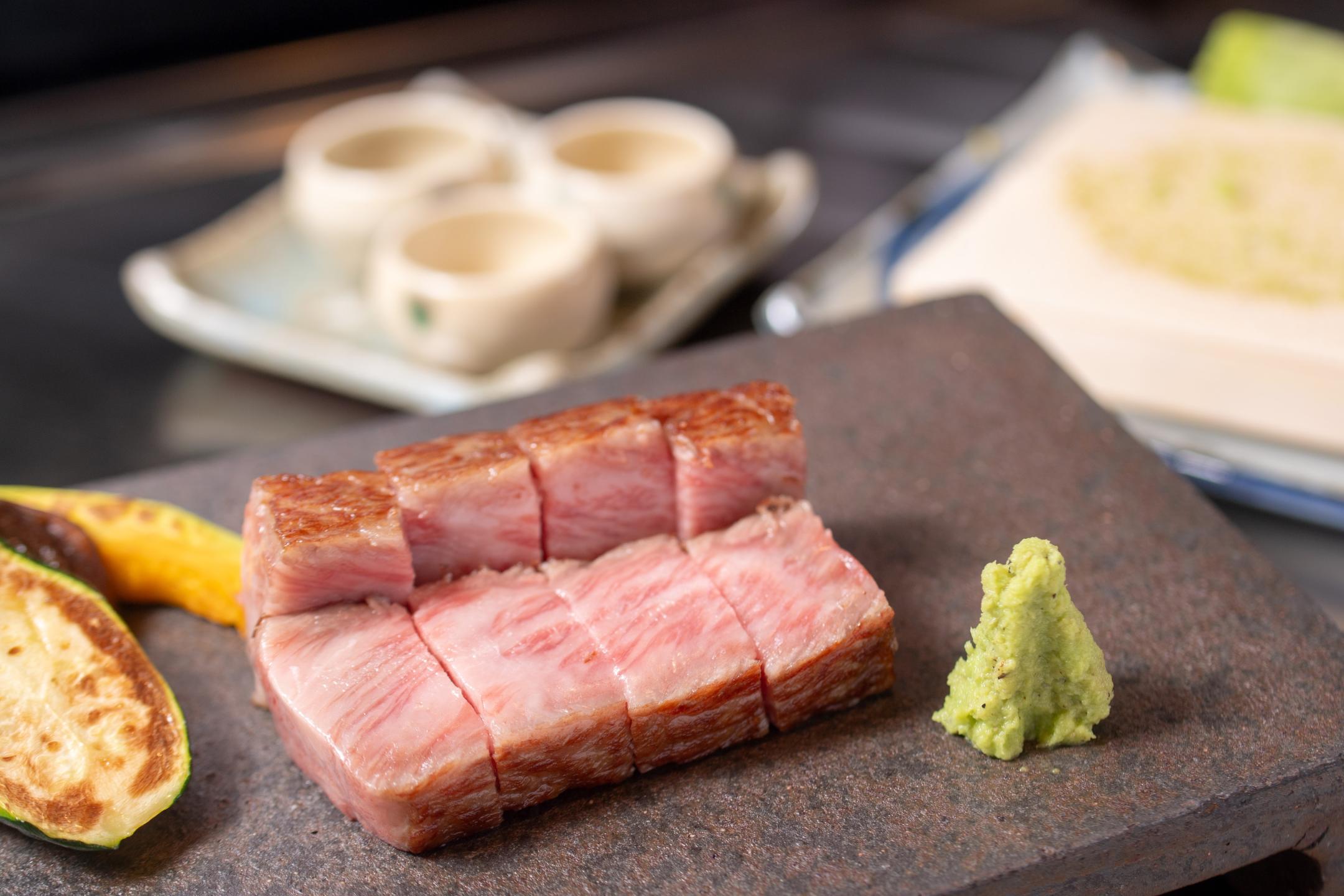 You can't help but be mesmerized as the sizzling aroma and flavors unfold in the live artistry on display here. The “Yamabuki” full-course meal (¥45,000 per person) features seared Ise tuna, Matsusaka beef shabu-shabu, sirloin or filet, and fragrant garlic rice, capturing Mie’s true culinary essence.