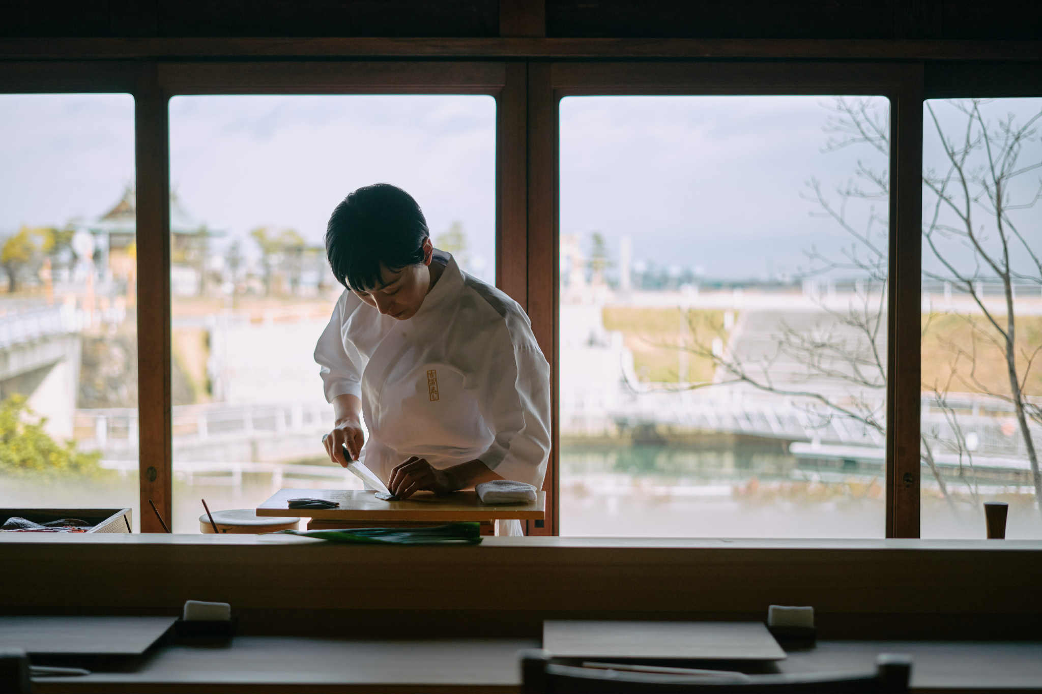 In January 2024, a 2-day sushi event was held with Fukuoka’s famous Yoshitomi Sushi restaurant. A cypress counter was set up in the 2nd-floor hall, where the Yoshitomi's 2nd-generation chef crafted Edo-style sushi with local fish as part of a special dinner for guests. The serene setting elevated an amazing meal into a timeless moment. (Rates are ¥50,000 per person, including dinner and breakfast, based on a group of 4 guests.)