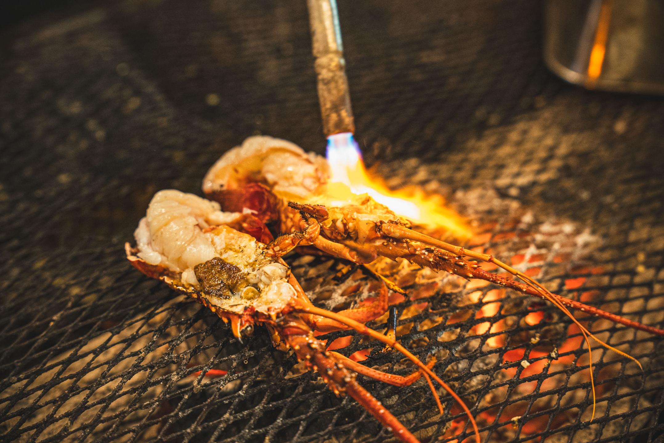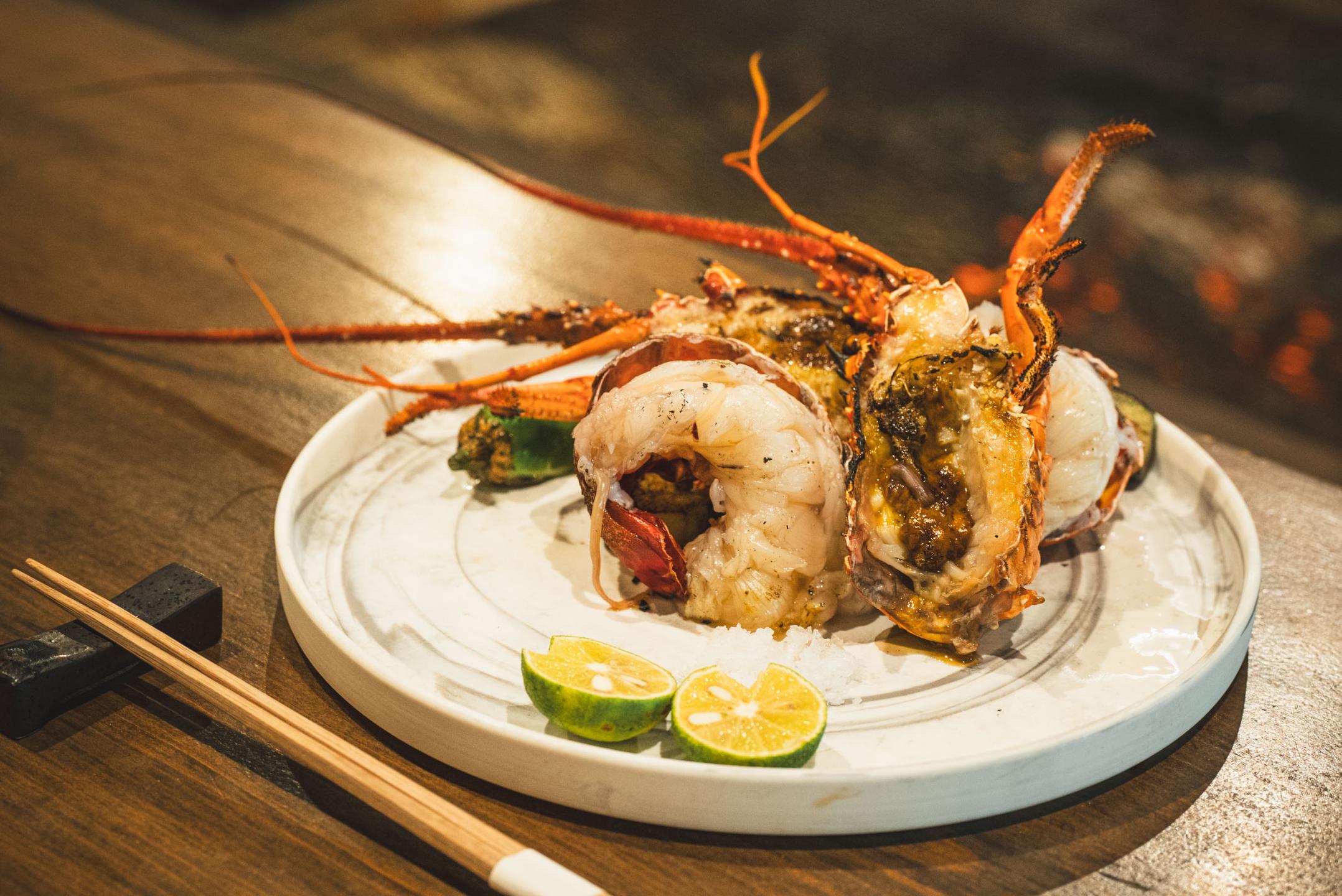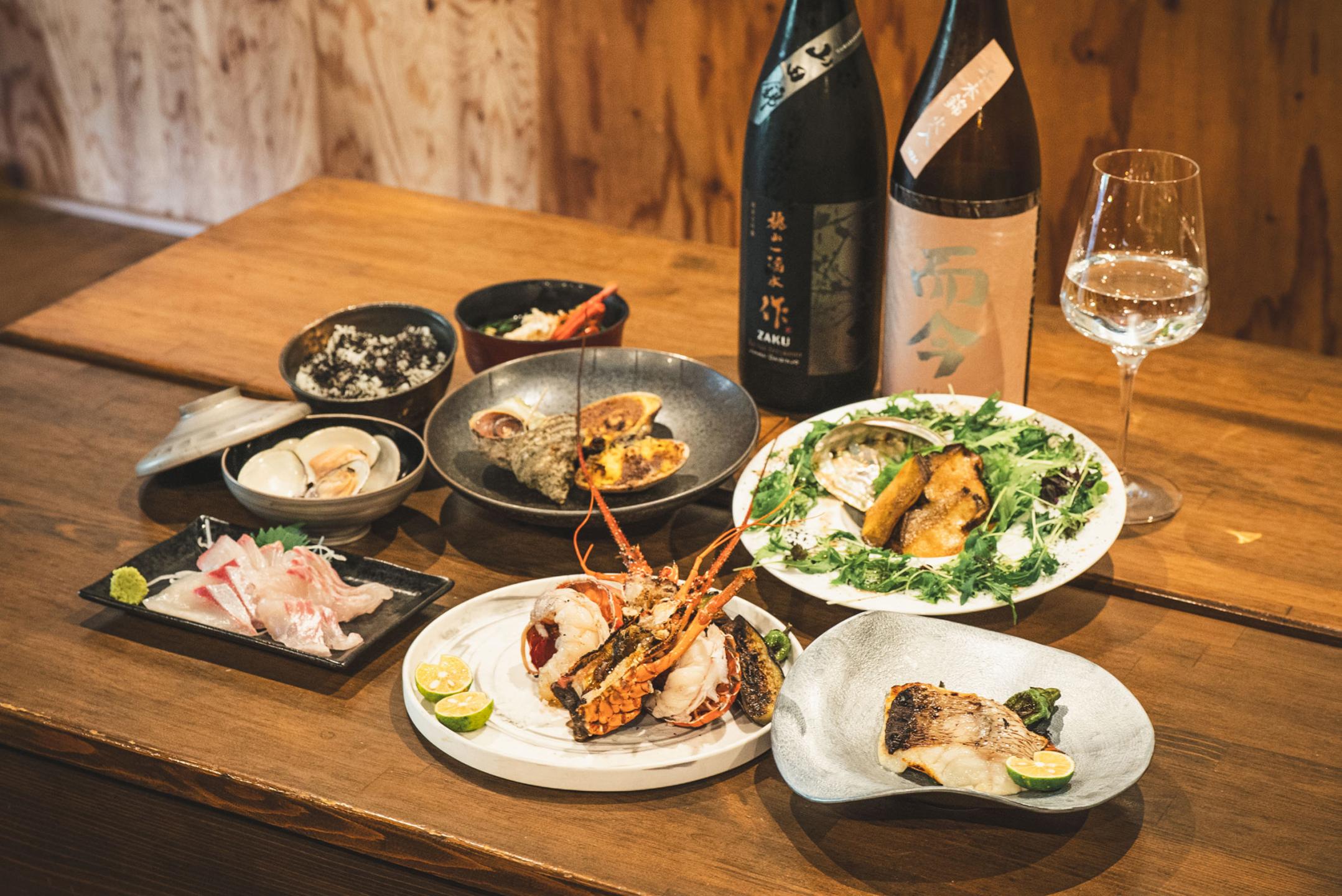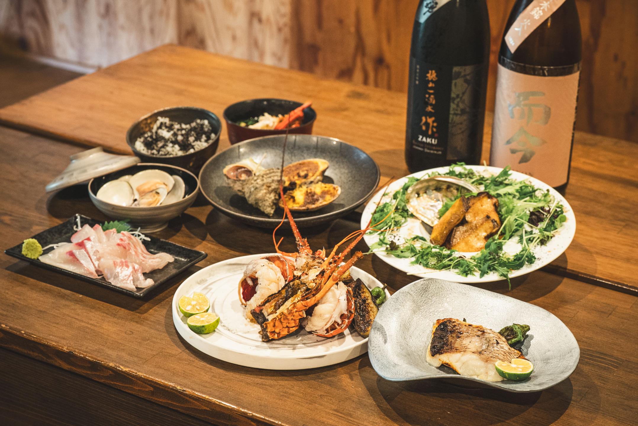 The chef, a fisherman with classical training in Western cuisine, grills freshly caught local seafood over charcoal on a hearth in the center of the hut. Ise lobster and abalone arrive straight from the tanks for maximum freshness.