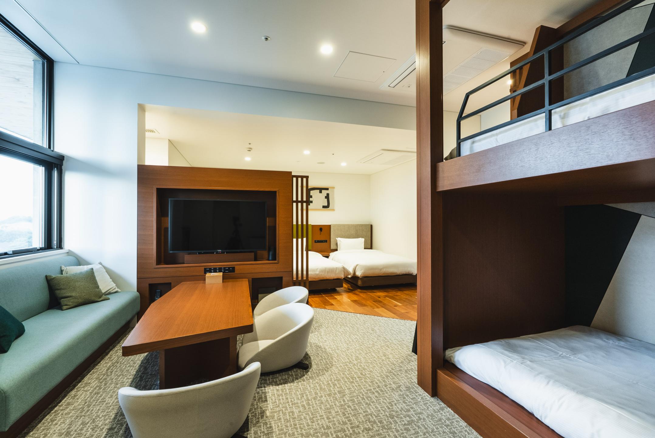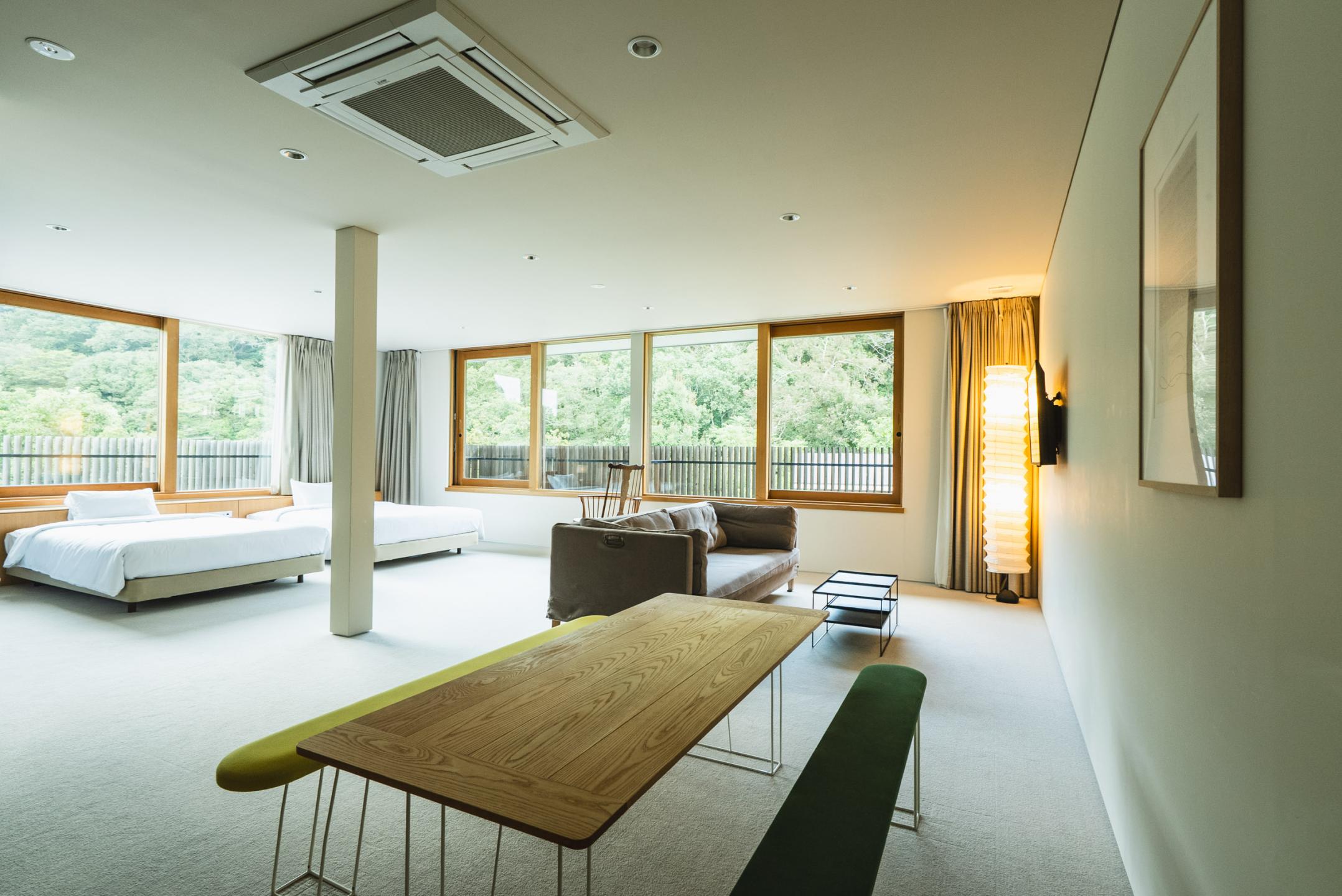 Each building has its own unique concept, reflected in every detail from furniture to décor, and consists of a refined Japanese-style concept room of about 70 square meters along with twin rooms (6–10 per building) for comfort and variety.