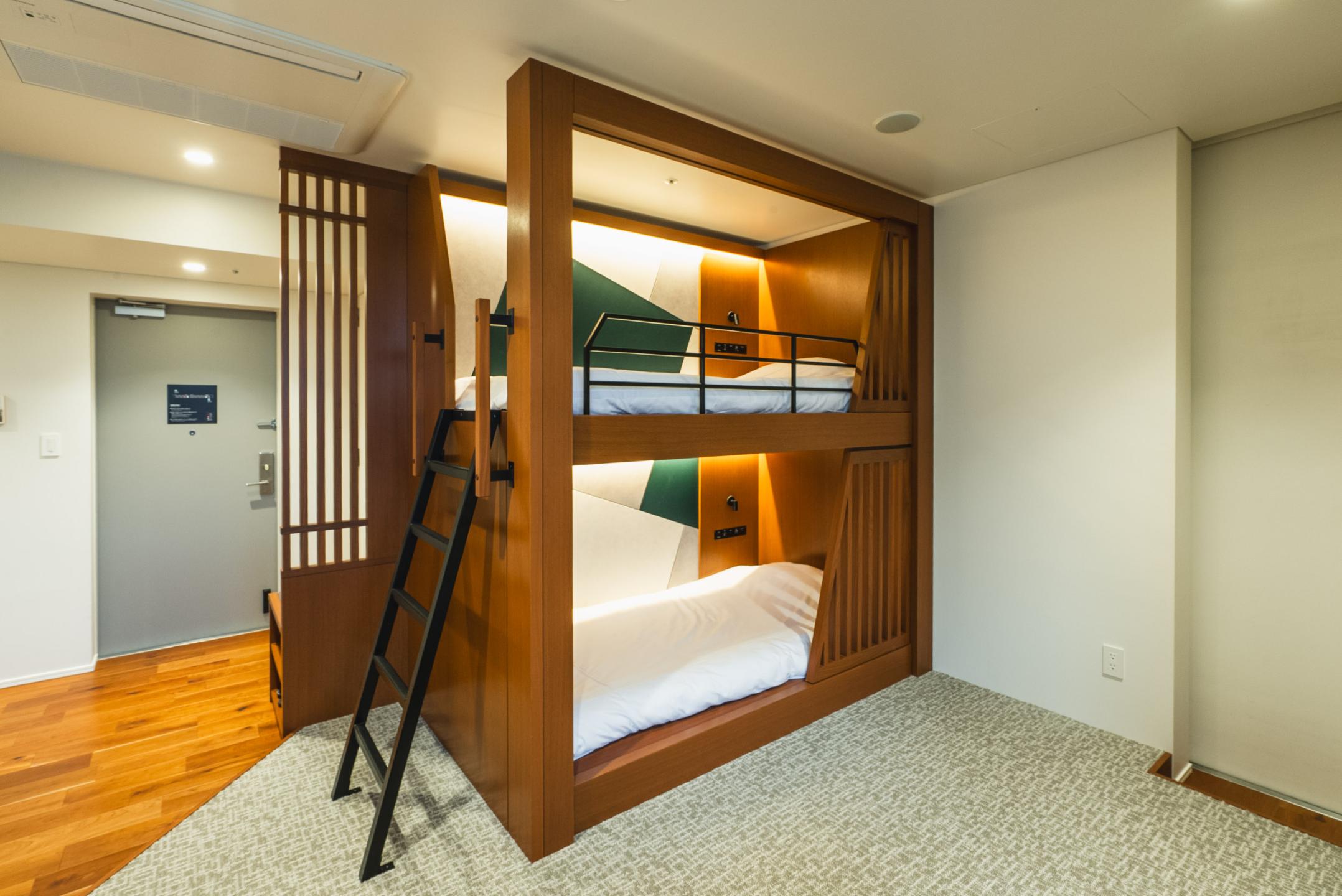 Spread across the 2nd floors of 4 buildings on San Sebastián Street, Hatago VISON (from ¥32,000) is a modern take on Edo-period inns.