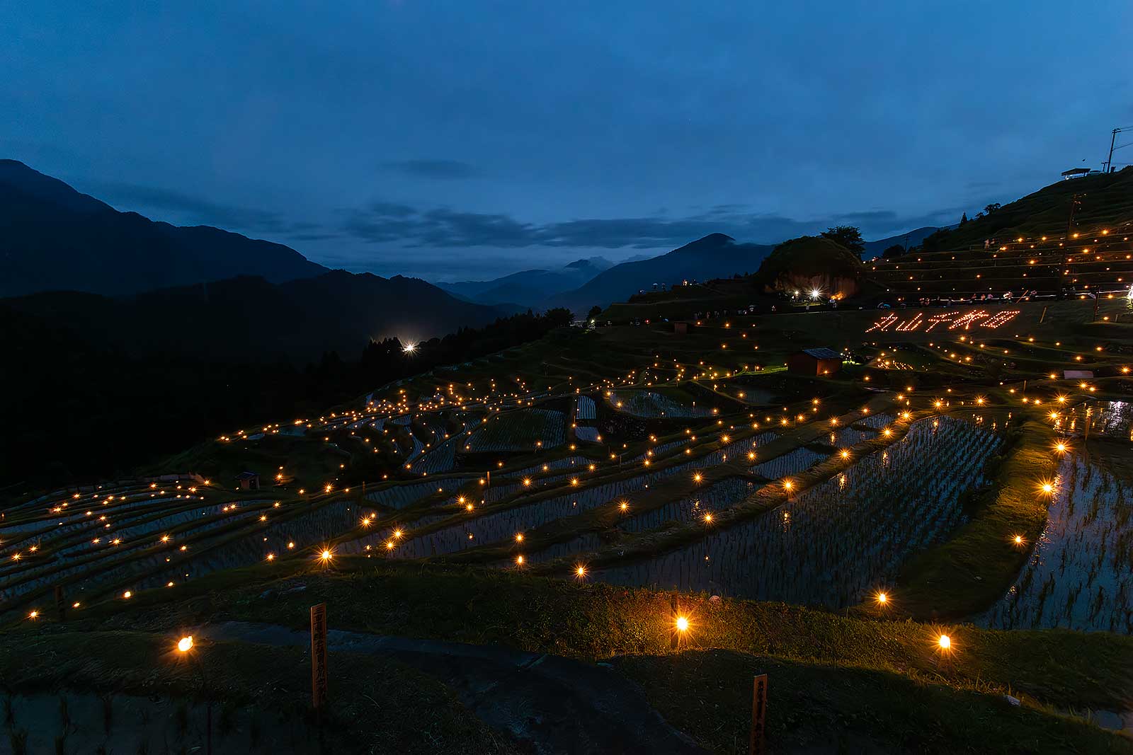Among terraced rice fields, those with a thousand tiers are called Senmaida. Maruyama Senmaida has a long history, with 2,240 terraces recorded in 1601. This number decreased over time, but the community restored it. Today, thanks to a field ownership system and the Maruyama Senmaida Conservation Group, it has 1,340 terraces, making it Japan's largest.