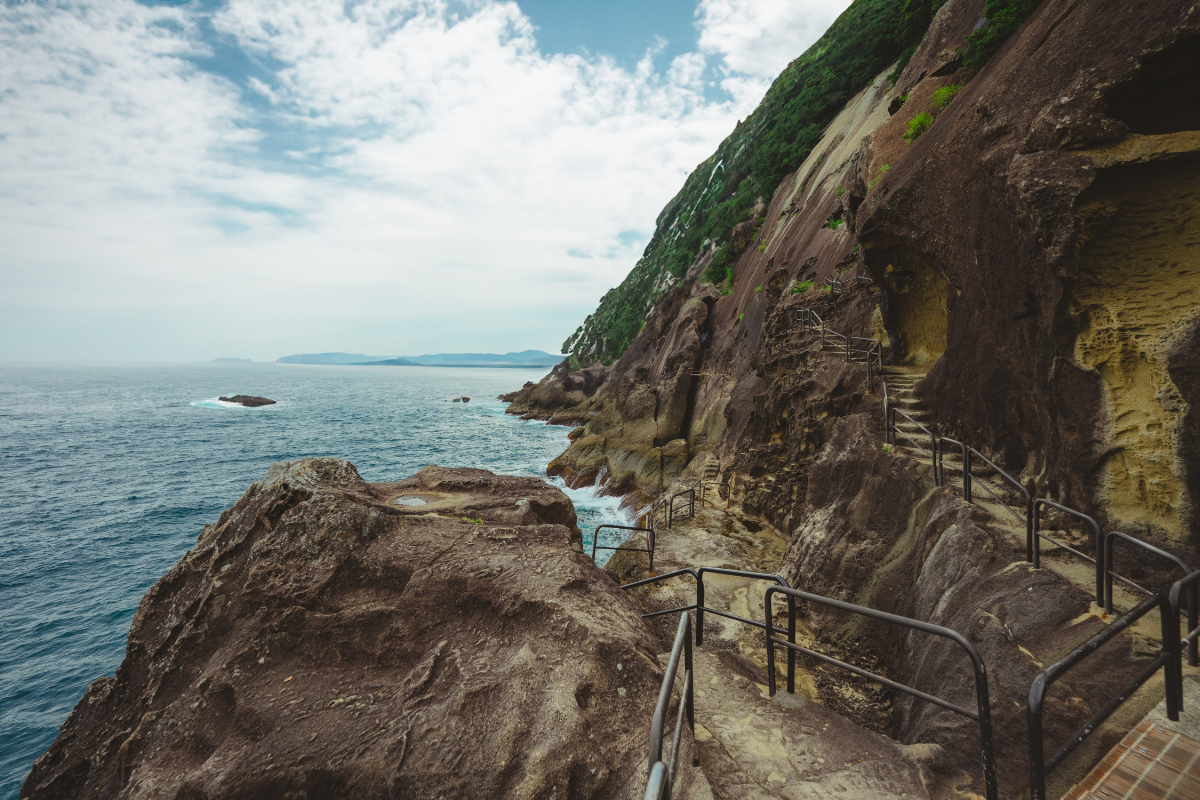While most of Kumano Kodo is covered in trees, the Iseji route is close to the breathtaking Kumano-nada Sea, which stretches eastward in Mie Prefecture. This World Heritage Site features countless exotic rocks of all sizes carved by rough waves. Legend says it was called Oni no Iwaya (Demon's Rock Cave), before later being called Onigajo after Taga-maru, a notorious pirate who hid there.