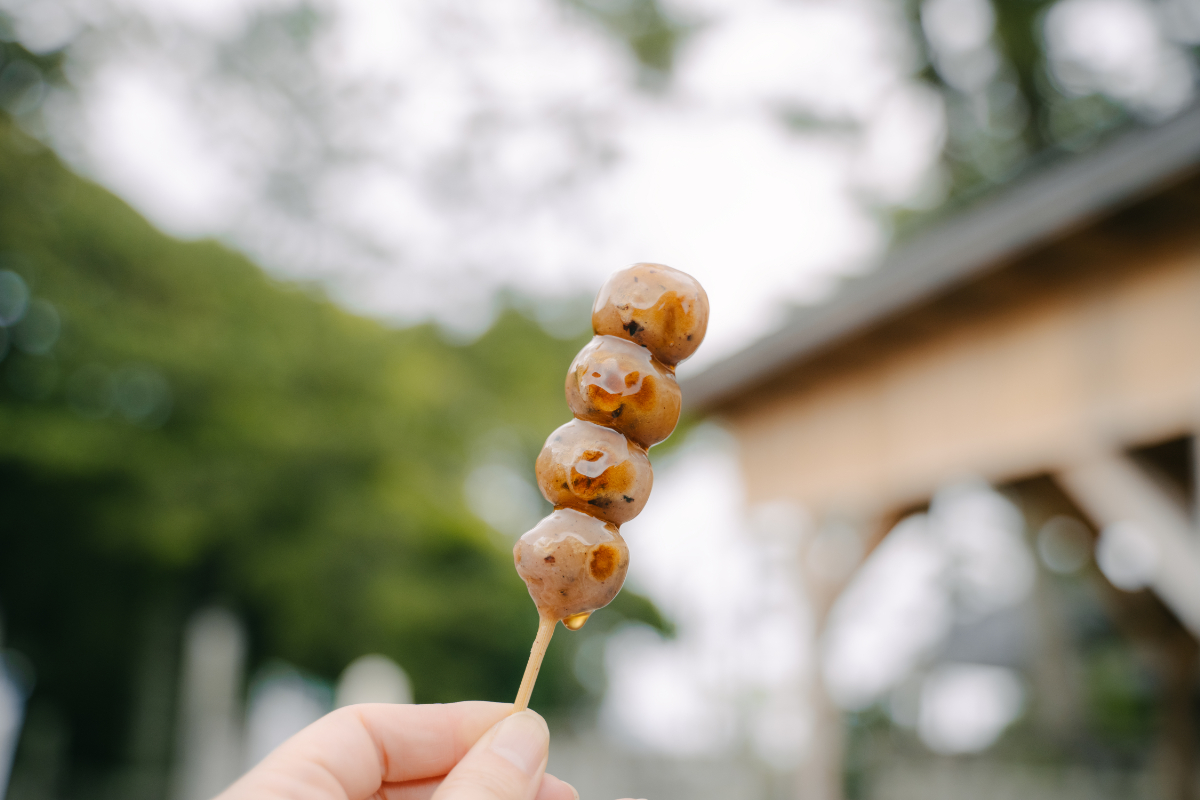 Try fresh Mitarashi dango at the neighboring Roadside Station Kumano Hana-no-Iwaya for ¥120.