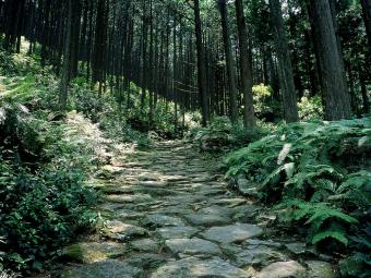 The stone paved path, which is said to be the best on the Kumanokodo-Iseji route, continues all the way into the cypress tree forest.